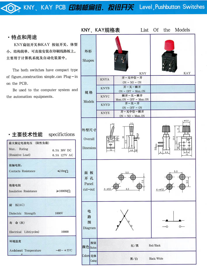 產(chǎn)品型號(hào):KAY印制板按鈕KNY扁鈕開關(guān)